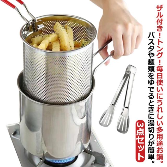 深型片手鍋 パスタポット ザル付き トング付き ミニパスタポット 片手鍋 鍋 なべ 片手なべ パスタ鍋 天ぷら鍋 ミニ 揚げ鍋 ステンレス製 IH対応 ガス火対応 深型鍋 煮込み鍋 天ぷら鍋 パスタパン 深鍋 中子付き 湯切りザル付き ミニ 小さい 一人暮らし