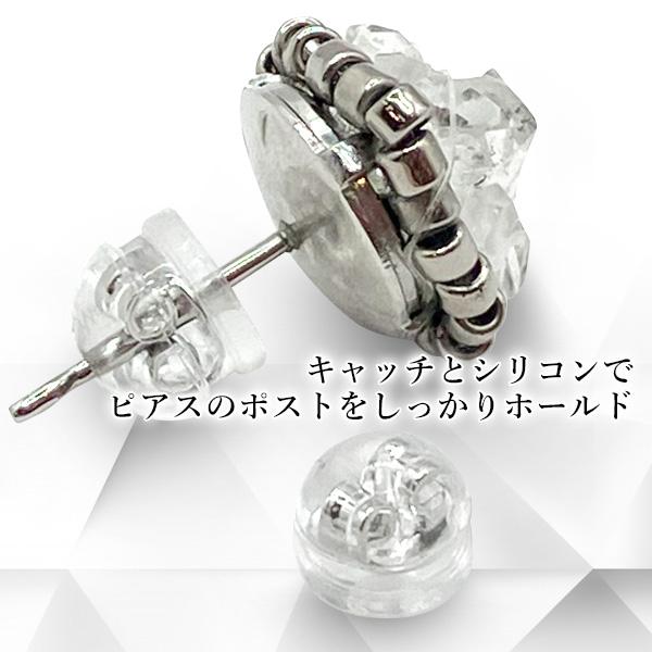 キャッチとシリコンでピアスのポストをホールドする構造なので