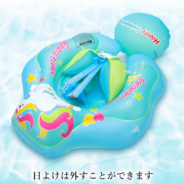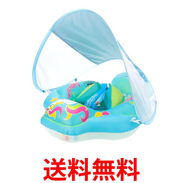 浮き輪 子供 かわいい ベビー 足入れ 日よけ 屋根付き ブルー コンパクト プール 水遊び (管理S) 送料無料