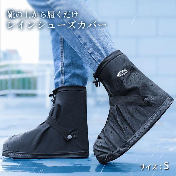 レインシューズカバー 登山 防水 おしゃれ レインシューズ シューズカバー ブラック S 靴 カバー折りたたみ 雨具 レインブーツ (管理S) 送料無料