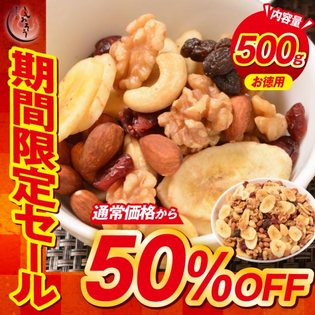 【期間限定50%OFF】6種のフルーツナッツ 500g ドライフルーツ ミックスナッツ アーモンド カシューナッツ くるみレーズン ナッツ フルーツ 食塩加工オイル不使用[送料無料][ポスト投函]