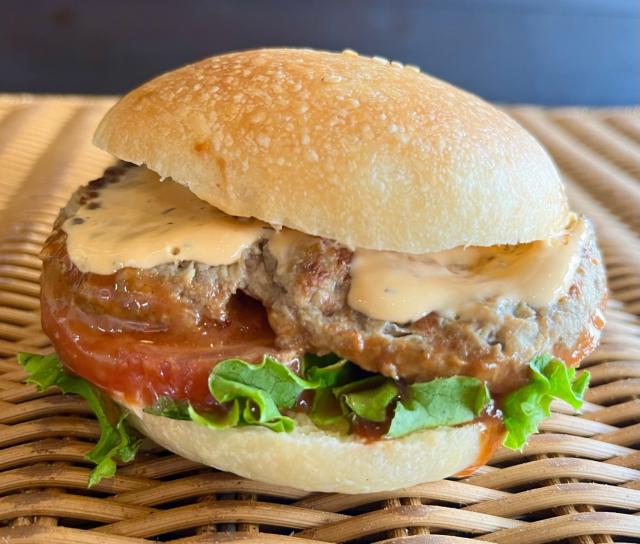 原材料:ハンバーグ・トマト・レタス・バーガーソース・特製ソース・強力粉・植物性バター・生クリーム・上白糖・脱脂粉乳・マーガリン・粗びきマスタード・塩/イースト(一部に卵・大豆・小麦・乳製品・牛肉・鶏肉・ゼラチンを含む)