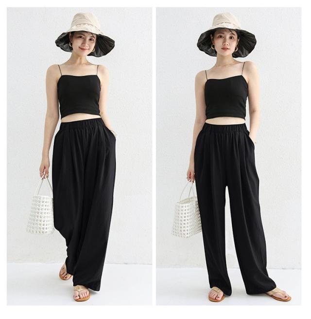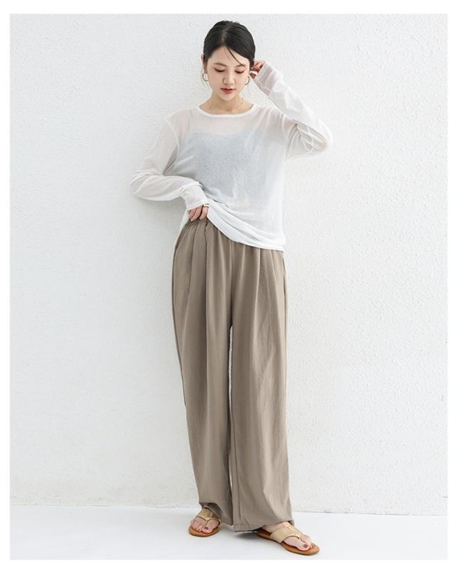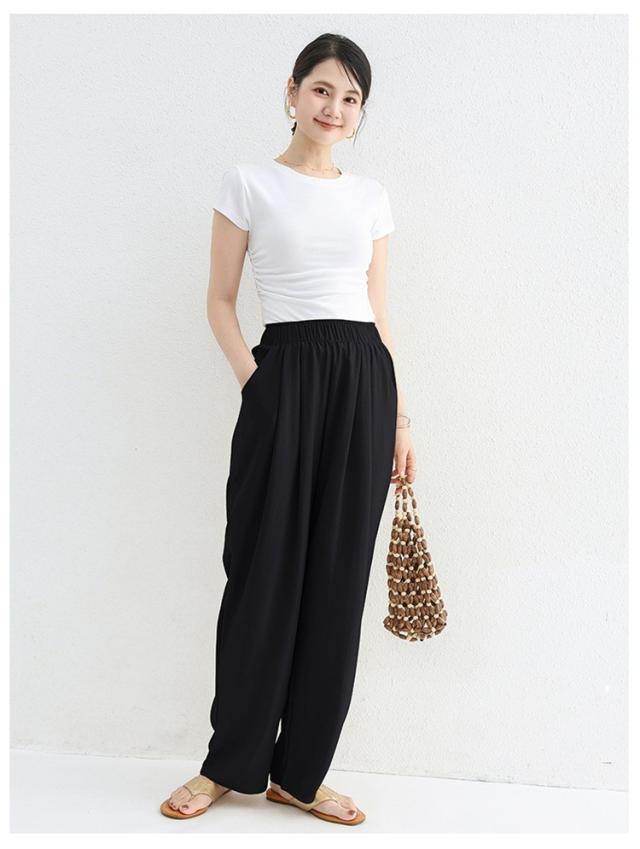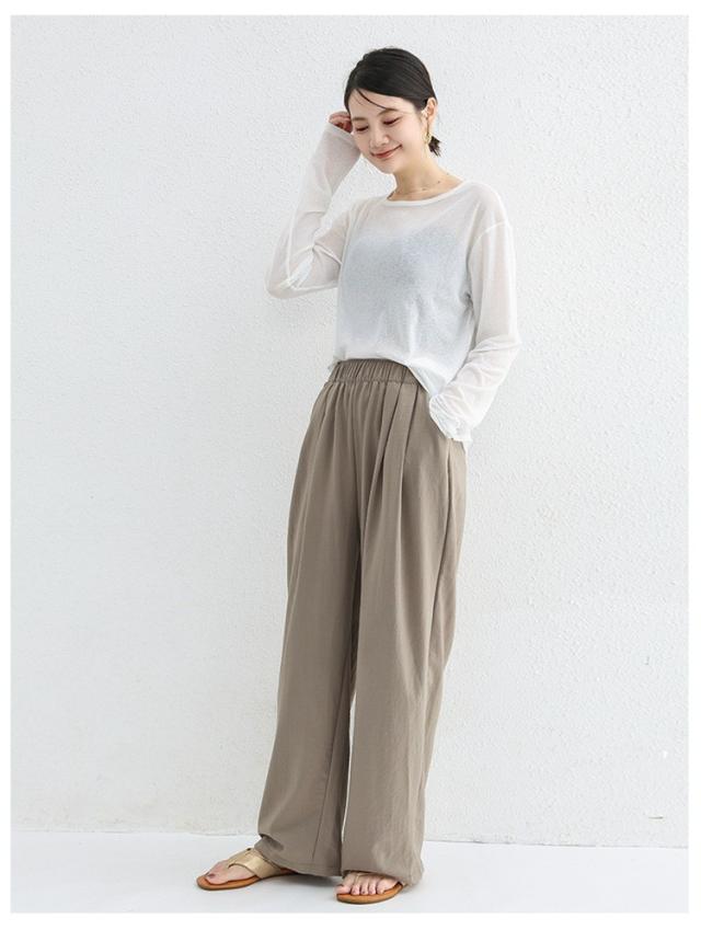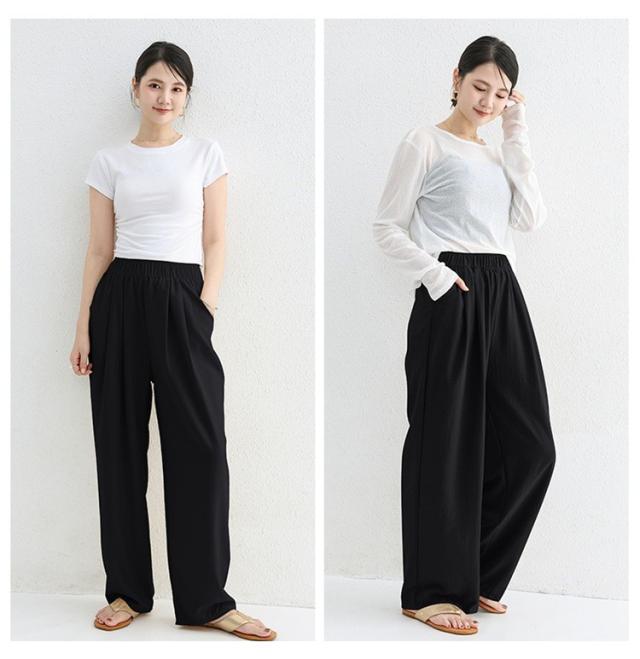 パンツ レディース ゆったり 夏 秋 涼しい ロングパンツ ウエストゴム 薄手 無地 薄手パンツ 春 夏 体型カバー きれいめ 春 リラックス ナチュラル 軽い 上品 リブ ワイドパンツ イージーパンツ 涼しい 大きいサイズ 部屋着