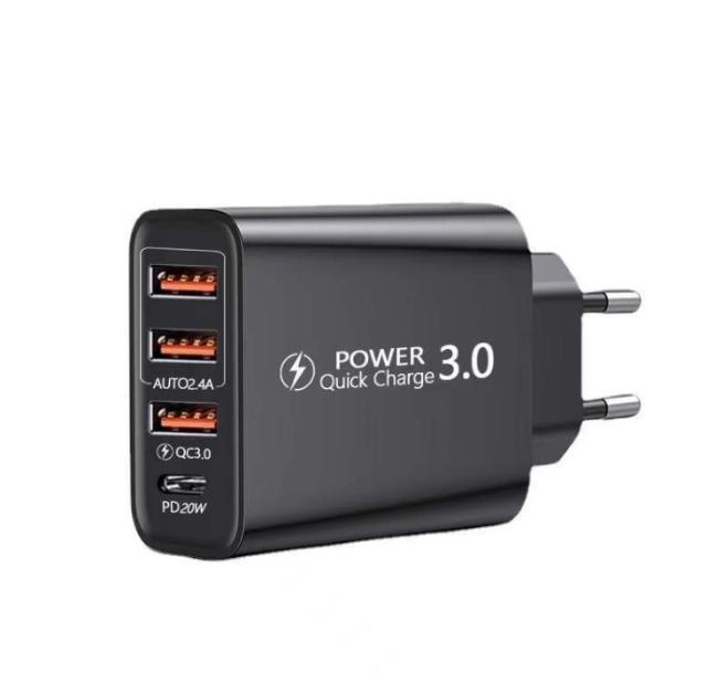 4 ポート ac アダプター USB-A+PD iphone ipad huawei oppo Samsung 充電アダプター 黒 usbポート 海外旅行用充電器3.0 QC3.0