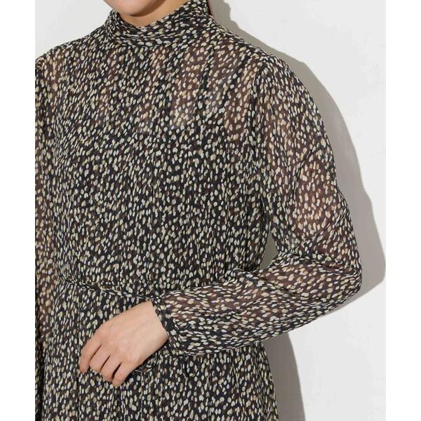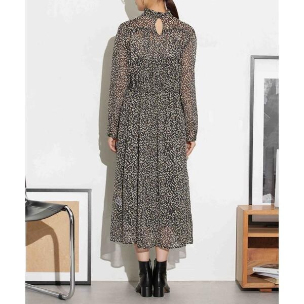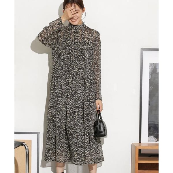 クラシック要素のある女性らしい柔らかな印象のプリントワンピース。身頃は襟元からタックできれいに広がるシルエットでハイネックがくたっと落ちたような衿がポイント。ウエストリボンで結ぶキレイめな着方やリボンを外してデニムなどのカジュアルなボトムとレイヤードコーデも◎。一枚着はもちろん、シアー感のあるワンピースにジャケットやニットカーデなどの冬らしい素材と合わせるスタイリングが今年のオススメです。