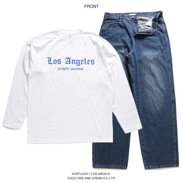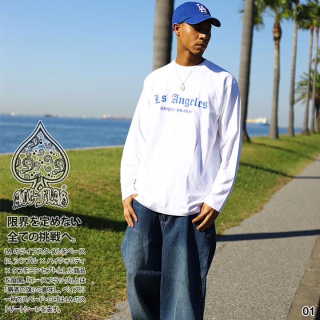 上下セット【46%OFF】ACE FLAG 長袖 ブランド Tシャツ ロンT デニム ロングパンツ メンズ 全3種 大きいサイズ エースフラッグ セットアップ ロサンゼルス LA ビッグシルエット b系 ヒップホップ ファッション ダンス ストリート系 ハイ 新作 AF-SE-LT-029