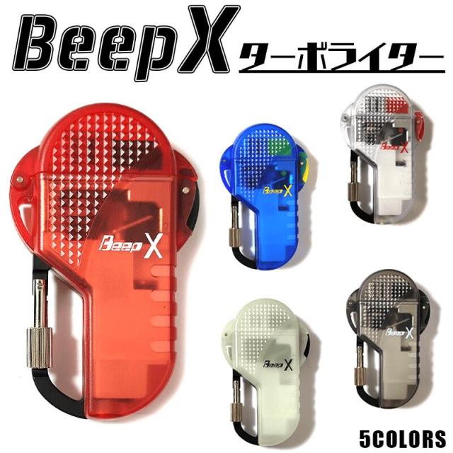 ガスライター ターボ BeepX ビープテン 5カラー 赤 青 アウトドア 黒 クリア ブラック 蓄光 ブルー レッド 屋外 ガス補充式 アウトドア