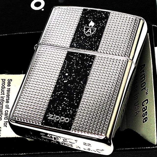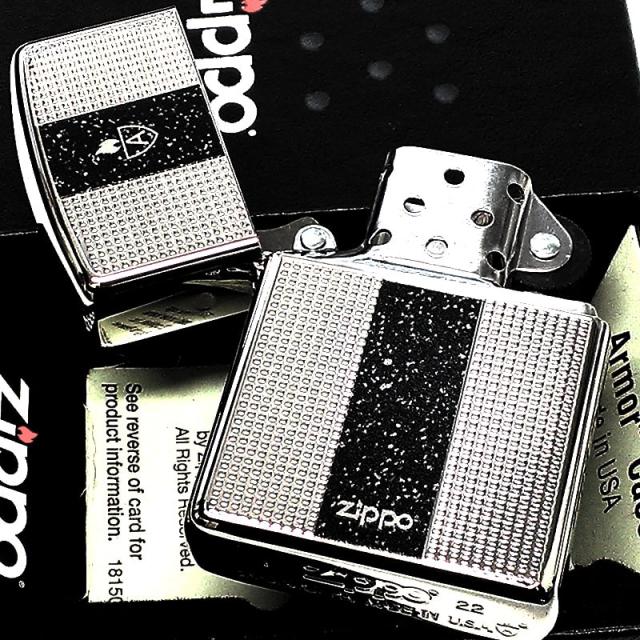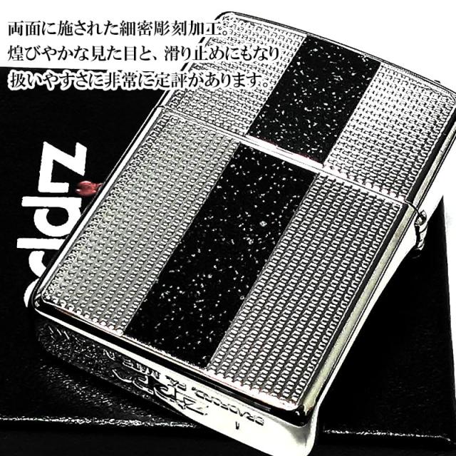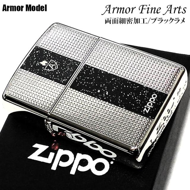 ZIPPO ライター アーマー ファインアーツ ジッポ ロゴ 重厚 シルバー ブラック 細密彫刻 ラメ 両面加工 銀 かっこいい おしゃれ メンズ
