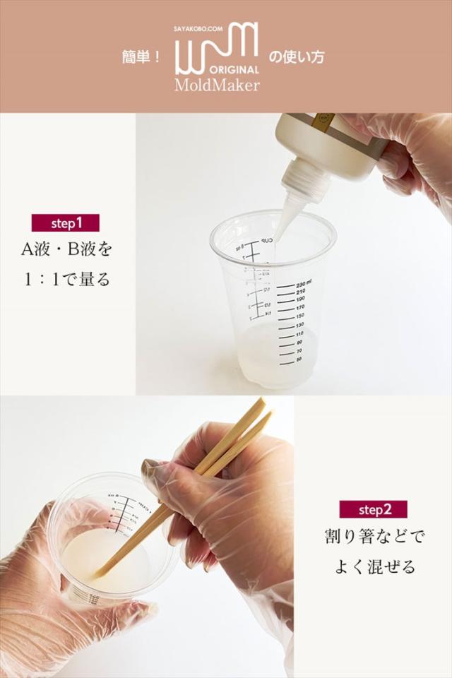 型取り材を1:1で混ぜ合わせて型に注ぐだけ。