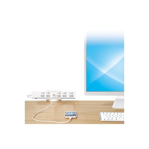 お手持ちのタップを挟んで机や棚に固定できて、抜き差しが便利です。