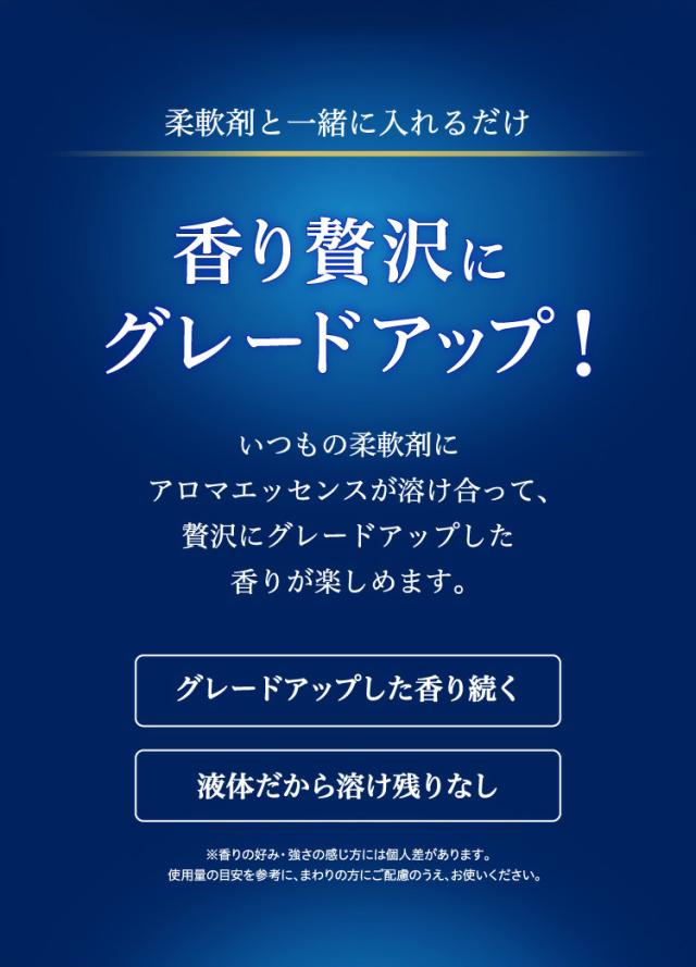 ●いつもの柔軟剤にアロマエッセンスが溶け合って、贅沢な香りが楽しめます。