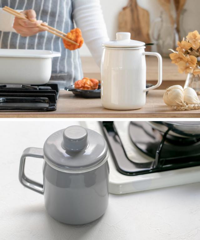 大人気のホーロー製オイルポットのシリーズに、普段使いにぴったりな350mlサイズが登場しました! ひとり暮らしのご家庭はもちろん、揚げ物の頻度が少なく「揚げ物はお弁当のおかずくらい」「フライパンでの揚げ焼きが基本」という方にもぴったりのオイルポットです。