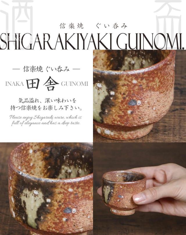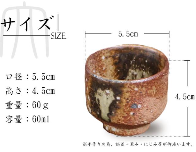 信楽焼 ぐい呑み ぐい飲み 60ml(満水時)お猪口 酒器 還暦祝い 父 おしゃれ 和食器 日本製 おちょこ カップ 食器 お酒 焼酎 焼き物 田舎ぐい呑み w418-05