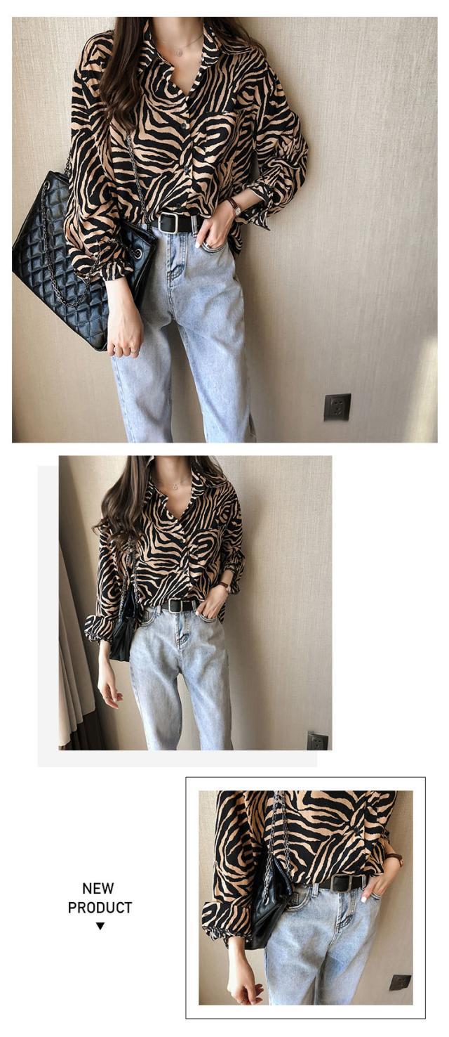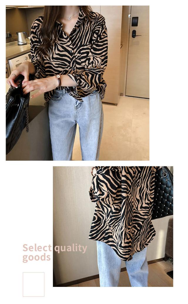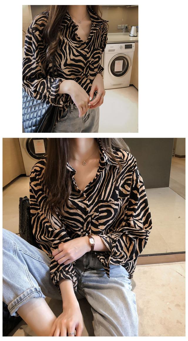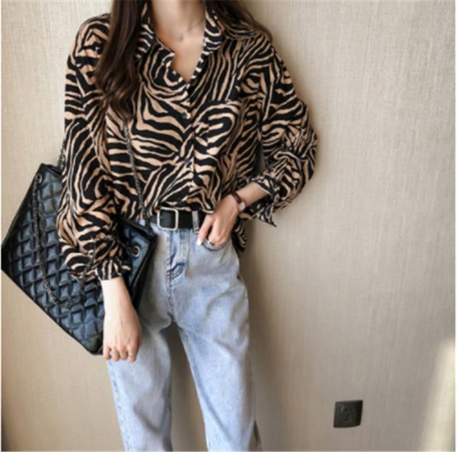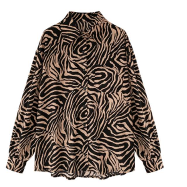 ゼブラ柄 ロングシャツ ブラウス 長袖 アニマル柄 総柄 ストライプ 襟付き 羽織り 着まわし 体型カバー とろみ 個性派 個性的 春 秋 コーデ トレンド おしゃれ お出かけ 送料無料
