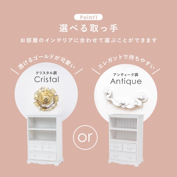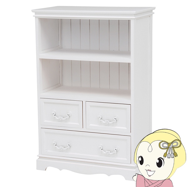 キャビネット アンティーク調取っ手 幅60cm 引出し オープンラック サイドチェスト シェルフ ラック 棚 白 ホワイト