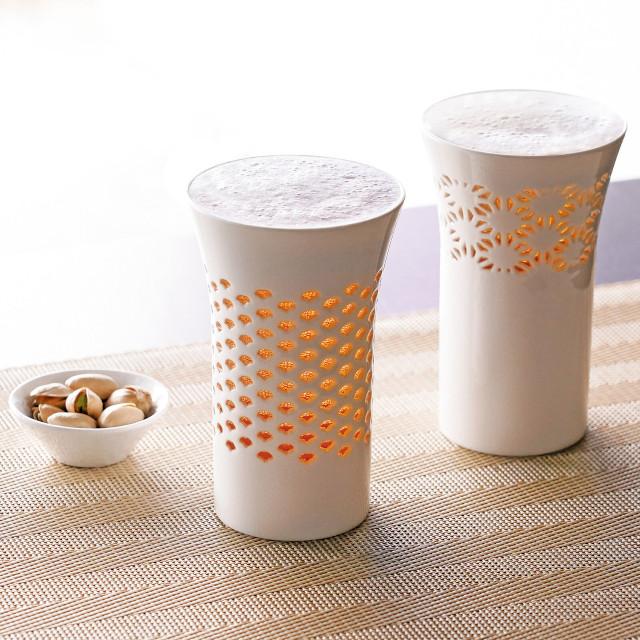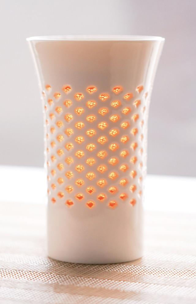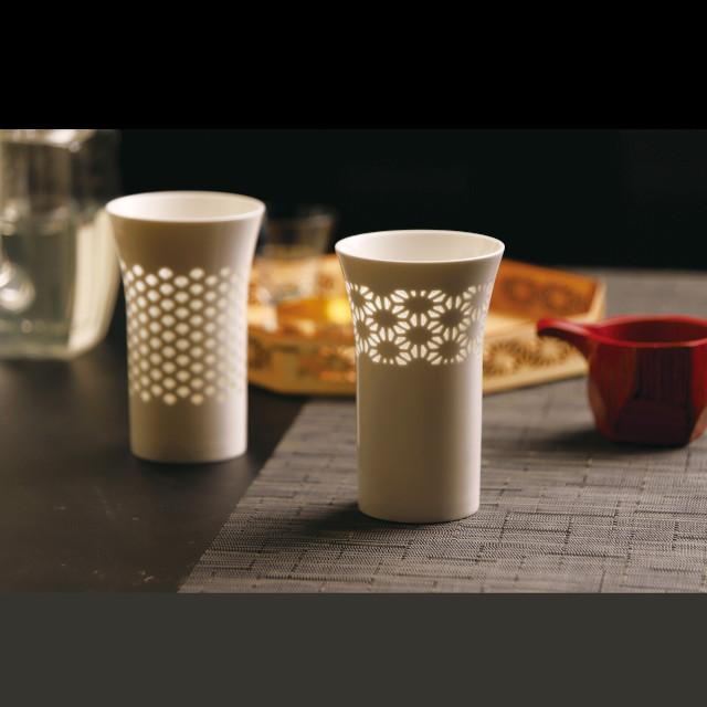 光を通して模様が浮かび上がる「蛍手」タンブラー。 |