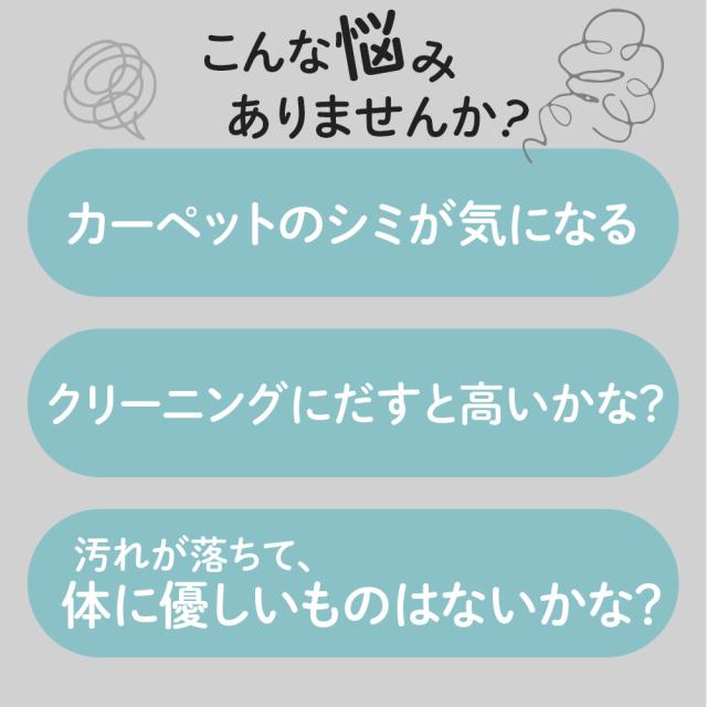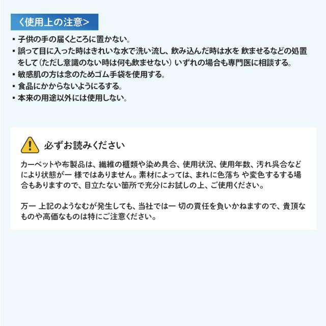 【使用用途】カーペットやテーブルクロス、カーテン等の布製品に付着した、水性および油性のシミ汚れの除去。