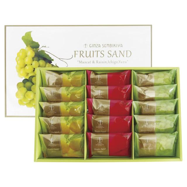 なめらかで口当たりのやさしいフルーツクリームと、香り豊かな果肉を、香ばしいクッキーでサンドした、銀座千疋屋オリジナルのフルーツサンド詰合せです。