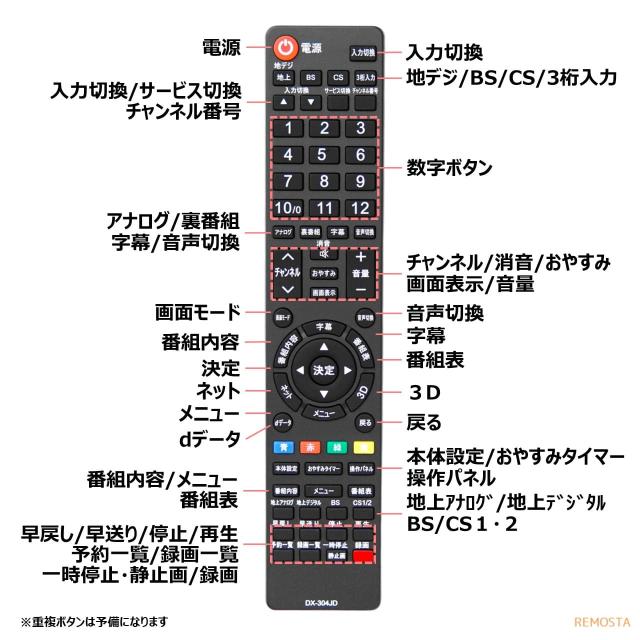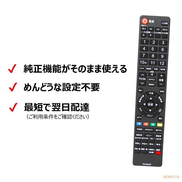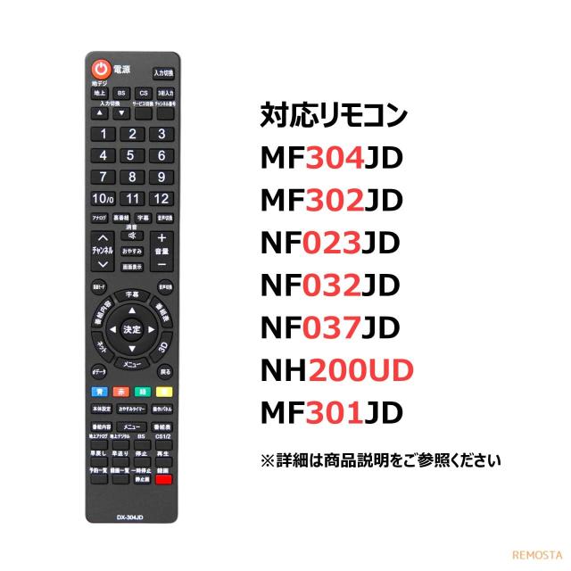 DXブロードテック フナイ テレビ リモコン MF304JD MF302JD NF023JD NF032JD NF037JD NH200UD MF301JD LVW-24EU2 LVW-32EU2 LVW-19EU3 LVW-24EU3 LVW-28EU3 LVW-32EU3 LVW-40EU3 LVW-196T LVW-246T LVW-326T LVW-406T LVTN40EU1 LVW-19A LVW-192 など 代用リモコン REMOSTA