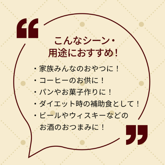 高正商店の「生アーモンド」は添加物や食塩を使用していません!そのため、幅広いお料理やお菓子にご活用いただけます!ローストすれば香りが立ち、歯ごたえも抜群です!