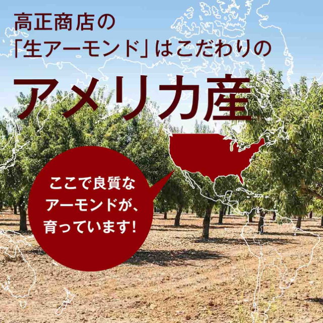 高正商店の「生アーモンド」はアメリカ産!世界一のアーモンド生産国です。