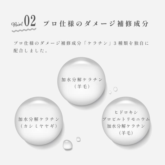 ●髪のパサつきを抑え、傷んだ髪を補修し潤いを与えてツヤのあるなめらかな髪へ