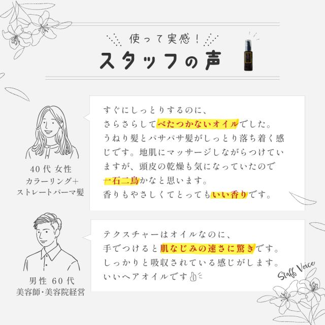 ●頭皮から髪へとつける洗い流さないヘアオイル