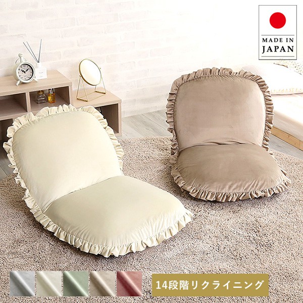 大人かわいいインテリア ベロア座椅子 座椅子 ベロア ベルベット かわいい コンパクト 小さい フリル おしゃれ くすみカラー 椅子 イス チェア リクライニング ピンク グリーン ホワイト グレー ベージュ