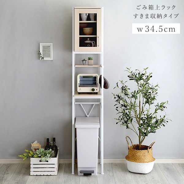 キッチン収納 隙間収納 食器棚 キッチンラック ゴミ箱上ラック 隙間 スリム 薄型 キッチン ラック 白 ホワイト ゴミ箱 上 アイアン コンパクト 幅34 高さ180 棚 収納 木製 すき間 扉 スチール 一人暮らし 木目 可動棚 ガラス扉 ゴミ箱収納 スペース 収納ラック おしゃれ