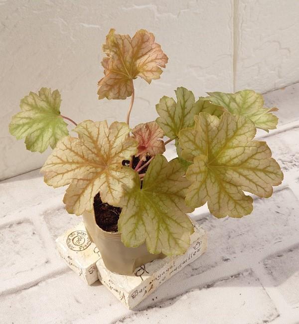 季節により葉色が変化します。 ハニーゴールド、オレンジブラウン、ライムグリーンと、 常に葉色が入り混じるニュアンスカラーが魅力です。 中型・丈夫で育てやすいです。 春:一年の中で最も鮮やかな時期です。 ヒューケラ最大の魅力「美しい葉色」を存分に楽しめます。 初夏:春〜初夏にベル型の小さな花が集まって咲きます。 鮮やかな葉とのコントラストを楽しめます。 夏:直射日光を避けた明るい日陰で育てると、きれいな葉色を長く楽しめます。 耐陰性もあるので、シェードガーデンで大活躍します。 秋:秋〜冬は、深みのある落ち着いた葉色になります。 鮮やかな秋の花との相性は抜群です。 冬:耐寒性マイナス15℃なので、常緑で越冬し翌年も楽しめます。 |