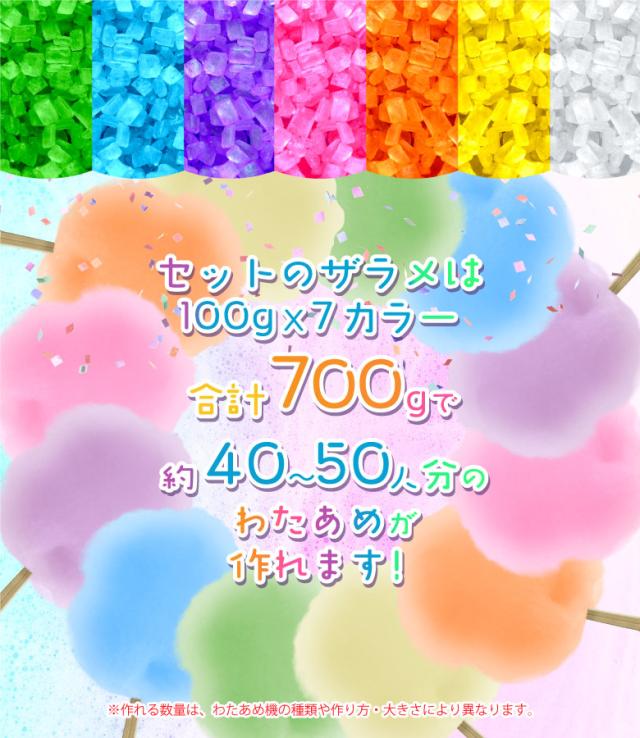 わたあめメーカー ざらめ7色セット 色つきザラメ わたあめ機 わたがし機 クッキングトイ わたあめ屋さん 綿あめ 綿菓子メーカー わたがしメーカー あめから作れる あめ玉 アメ玉 飴玉 家庭用 スイーツ お菓子 パーティー クリスマス 誕生日 プレゼント