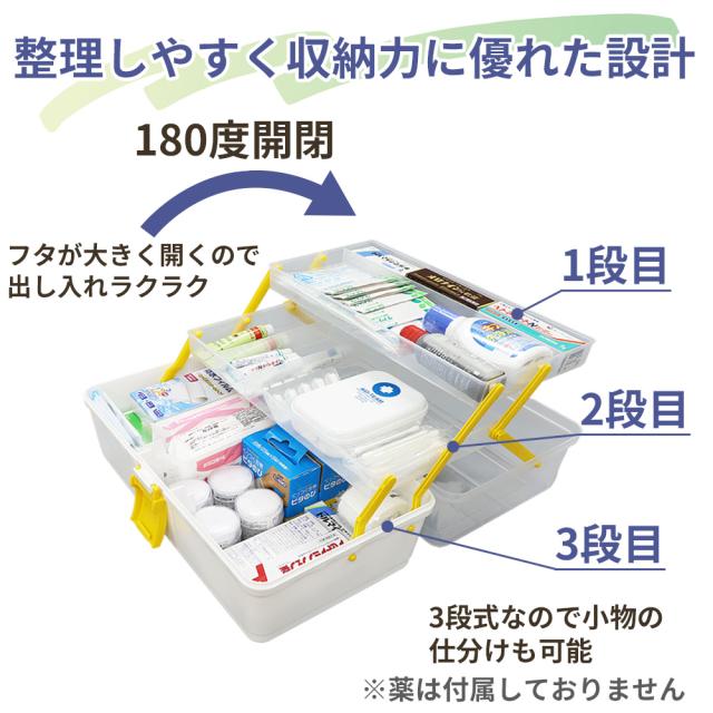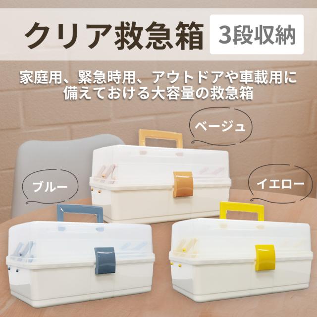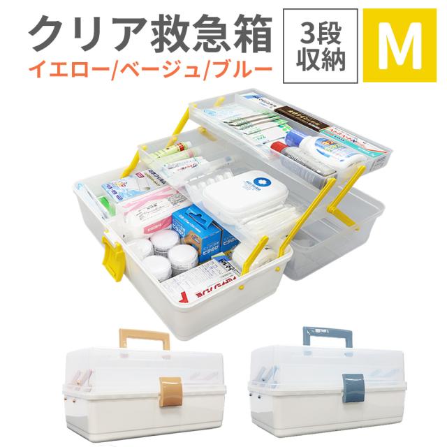 クリア救急箱 3段収納 Mサイズ 救急ボックス 防災用品 救急ボックス 3色 薬箱 防災グッズ PKB02