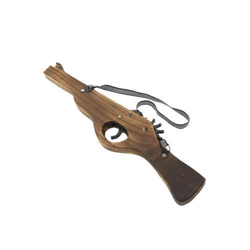 片手で簡単に使用する事が出来る、ピストル型の木製ゴム銃!