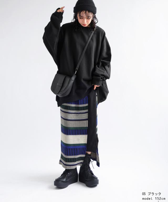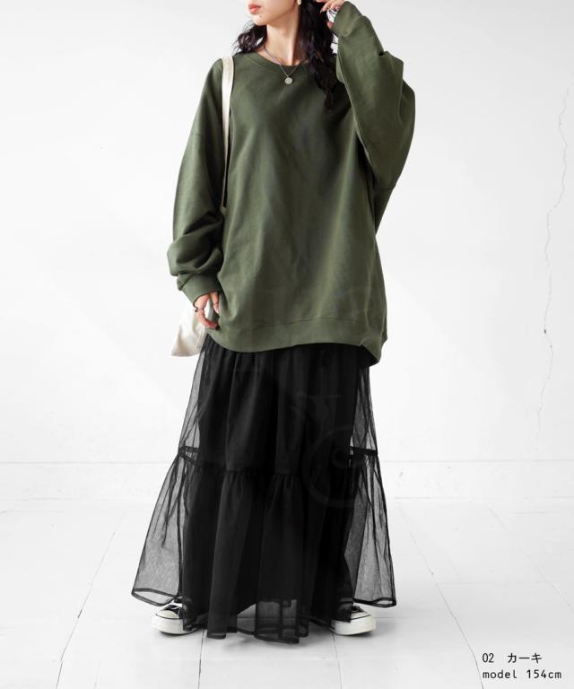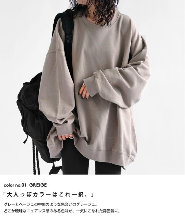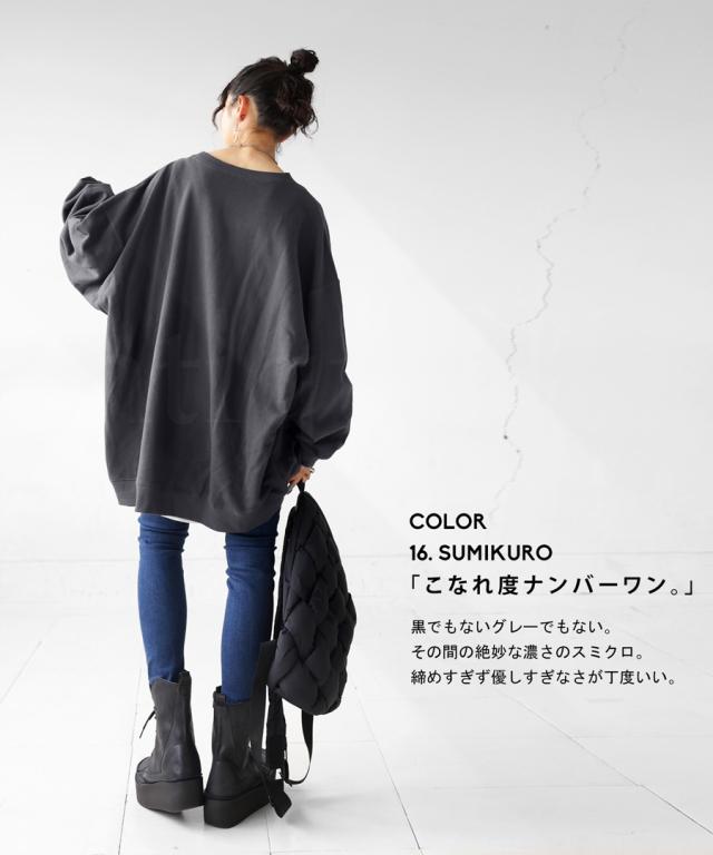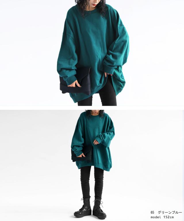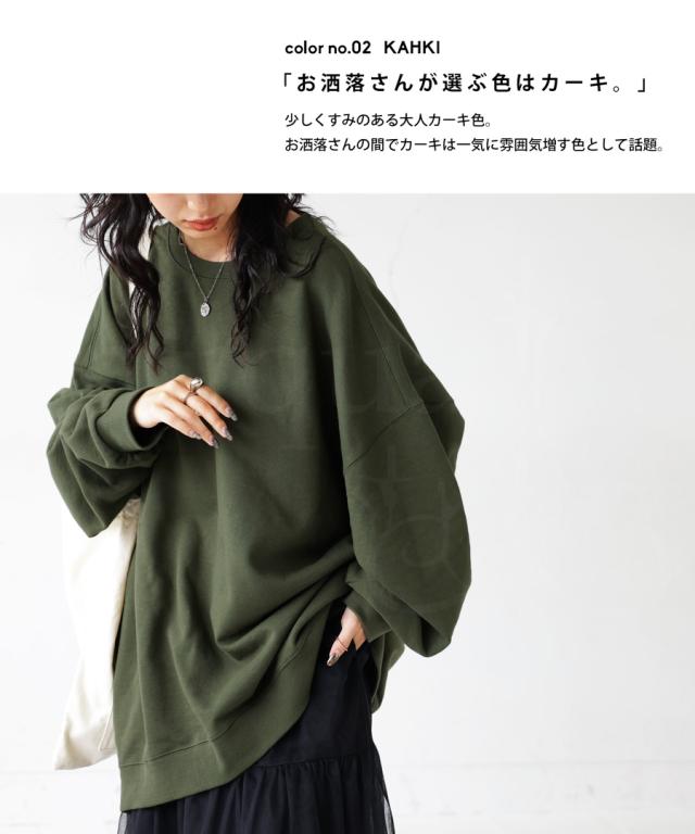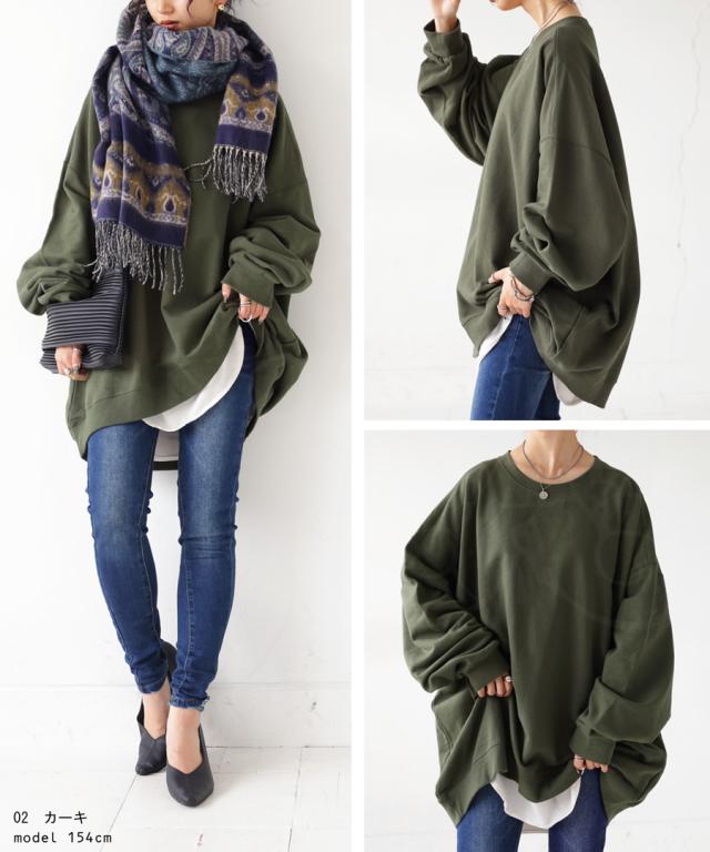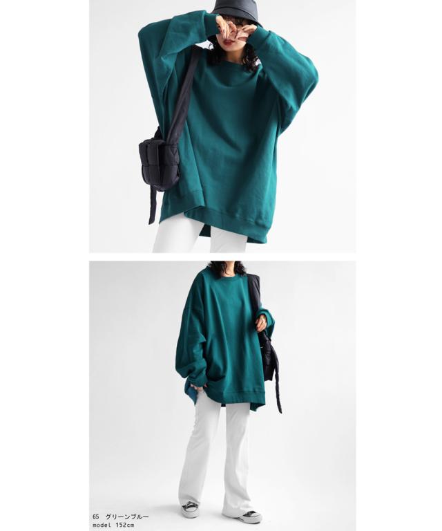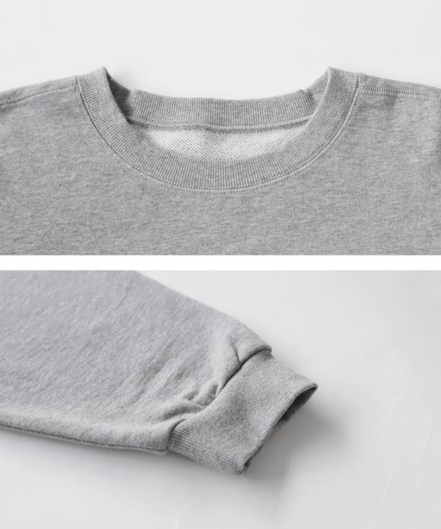 zya-00009 スウェット 無地 シンプル 長袖 クルーネック 丸首 リブ 前後差 ドロップショルダー ゆったり ラフ 裏毛 裏毛トップス ボリューム袖 きれいめ 綿 コットン 着痩せ
