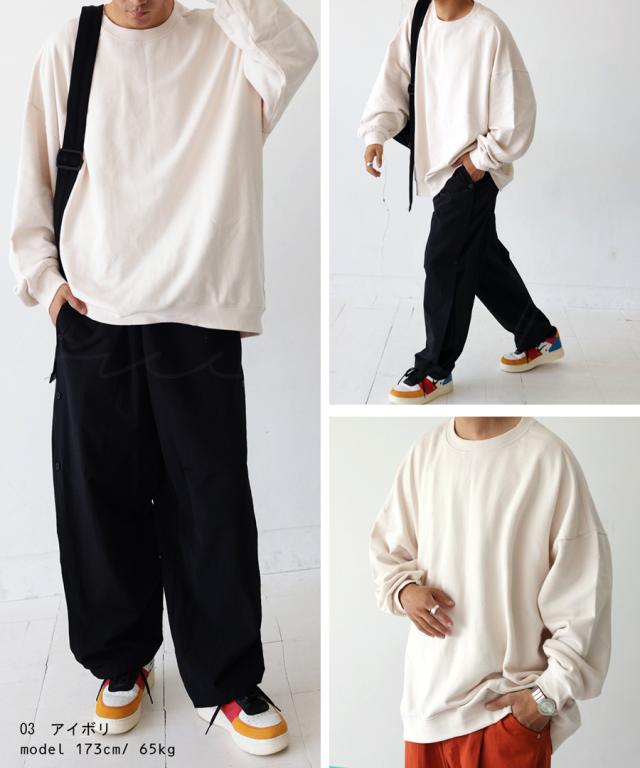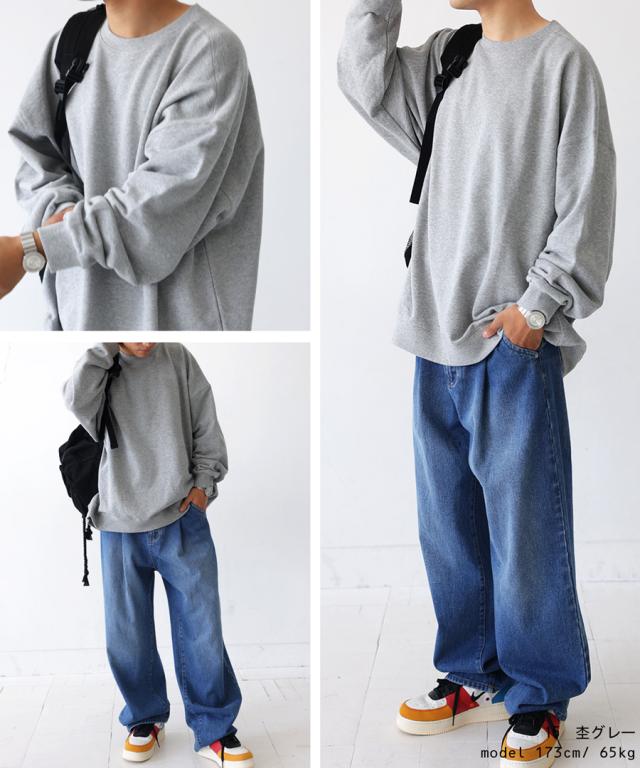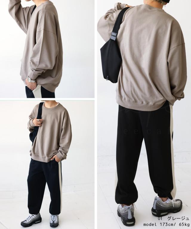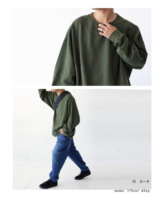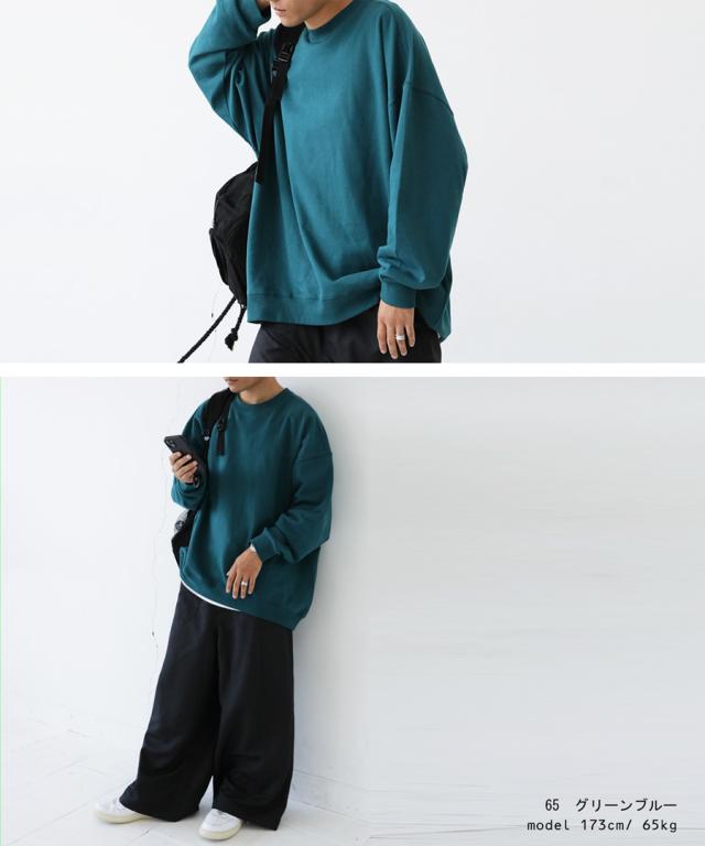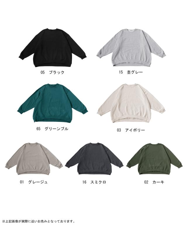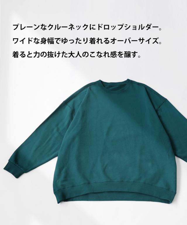 zya-00009z スウェット 無地 シンプル 長袖 クルーネック 丸首 リブ 前後差 ドロップショルダー ゆったり ラフ 裏毛 裏毛トップス ボリューム袖 きれいめ 綿 コットン 着痩せ