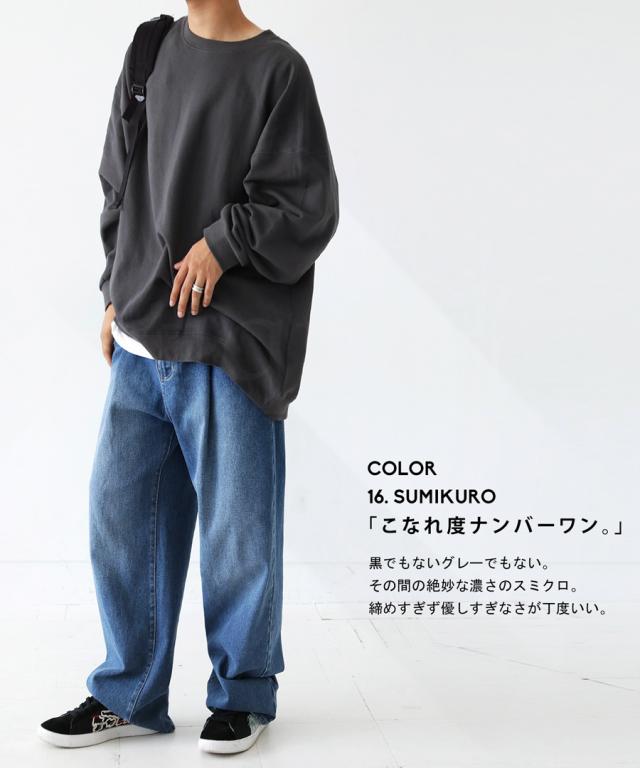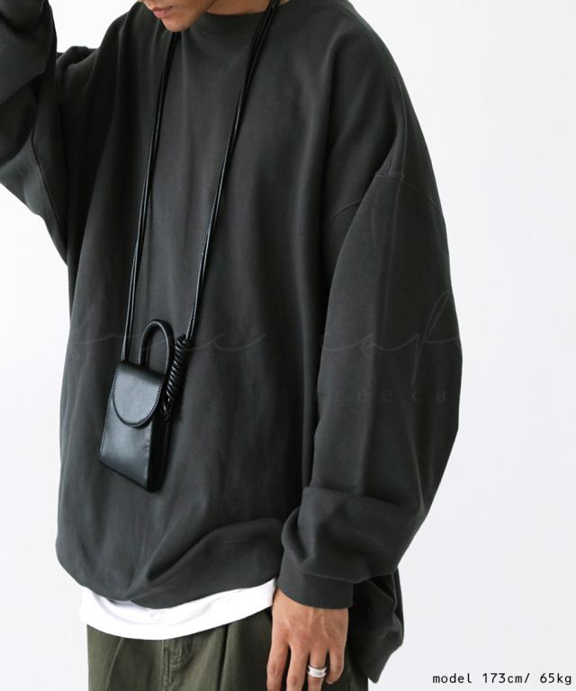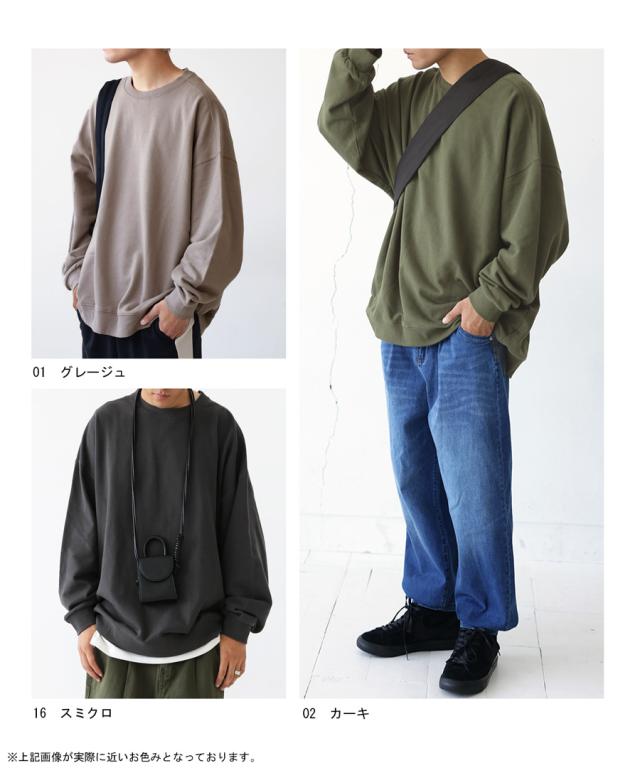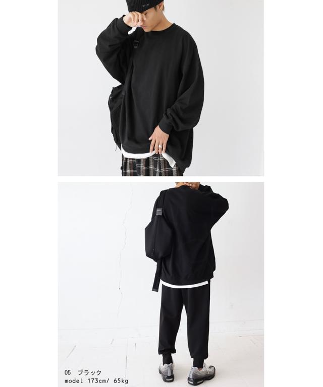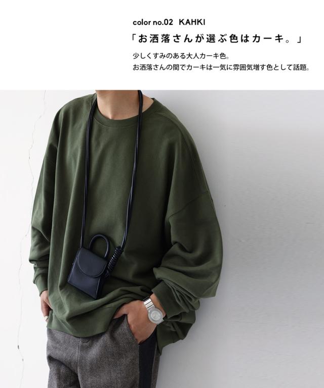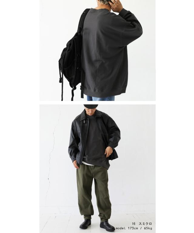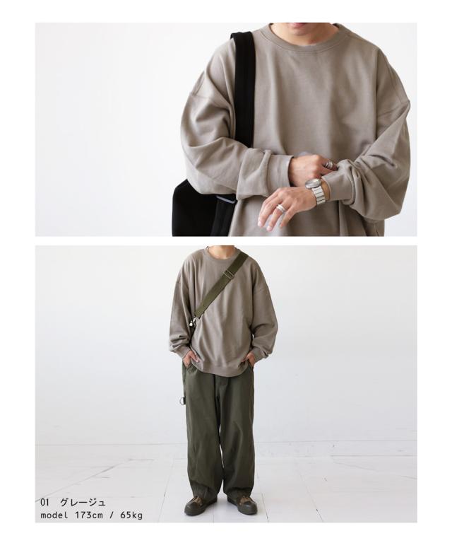 zya-00009z スウェット 無地 シンプル 長袖 クルーネック 丸首 リブ 前後差 ドロップショルダー ゆったり ラフ 裏毛 裏毛トップス ボリューム袖 きれいめ 綿 コットン 着痩せ