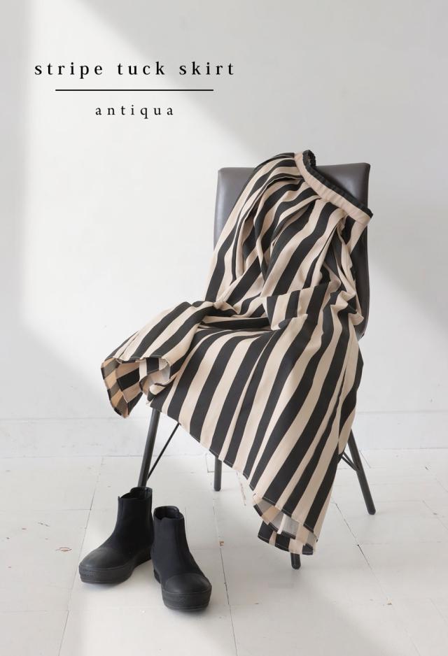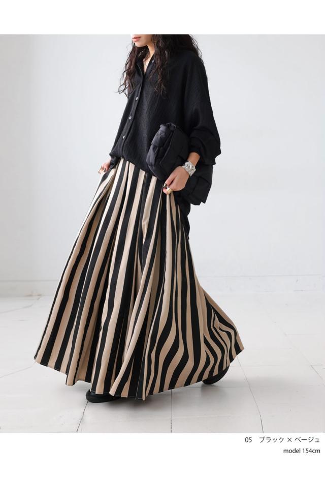 【検索ワード】ストライプ柄 フレアスカート スカート レディース ボトムス ロング 柄 柄スカート ゆったり フレア ロングスカート タック タックスカート ボリューム シンプル 柄ボトム 前フラット 後ろゴム マキシ丈 大きいサイズ レーヨン混 親子 リンクコーデ 親子コーデ お揃い antiqua アンティカ 大人 おしゃれ 10代 20代 30代 40代 50代 60代 春 夏 秋 冬 オールシーズン お洒落 カジュアル かわいい かっこいい あんてぃか