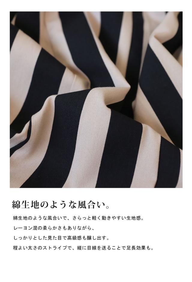 ・程よい太めのストライプ柄が縦に目線を送ることで脚長効果も◎。