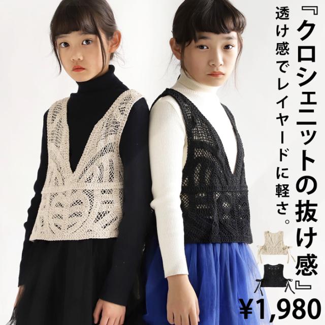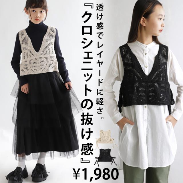 新年特別!半額クーポン対象 9日20時〜14日10時 クロシェニットベスト 子供服 キッズ ベスト トップス 綿100 ジュニア・(100)メール便可 TOY