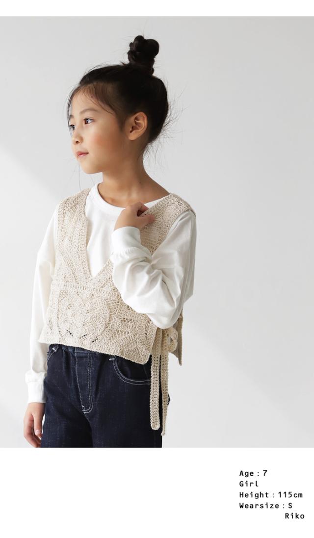 【検索ワード】クロシェニットベスト ベスト トップス 綿100 ショート丈 クロシェ編み かぎ針編み ビスチェ サイドリボン ゆったり Vネック カフタン リーフ柄 柄編み 透かし編み ニット シアーニット 透け 重ね着 レイヤード ノースリーブ 短め コンパクト 綿 コットン レース サイズ調節可 キッズ 子供服 女の子 ジュニア 低学年 高学年 S M 親子 リンクコーデ 親子コーデ お揃い おそろ オソロ ファミリー 双子コーデ プレゼント お祝い 出産祝い 春 夏 秋 冬 オールシーズン 女の子 女児 通園 通学 お出かけ お洒落 アンティカ antiqua おしゃれ 可愛い かっこいい