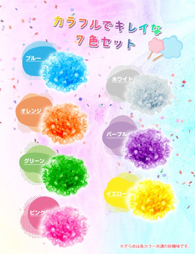 わたあめ ざらめ 7色×各100gセット ザラメ 700g 国内メーカー製造 綿あめ 綿菓子用 わたがし わたあめ機 カラーザラメ 色付き レインボー 粗目 砂糖 わたがし機 家庭用 スイーツ お菓子 パーティー クリスマス 誕生日 インスタ映え 小学生 男の子 女の子