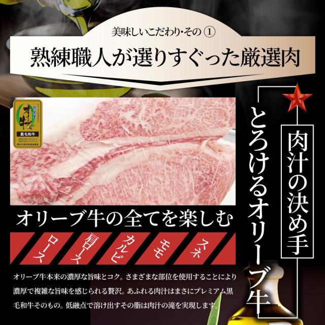 肉肉しさを追求したオリーブ牛にうまみカルビオリーブ豚を黄金比ブレンド