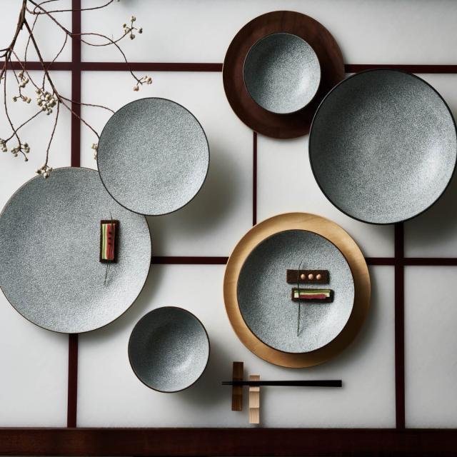 落ち着いた色味と網目状の細かな模様が特徴の「安居(あんご)」シリーズ。シンプルな形と色味のため、どんな料理とも馴染みやすく、普段使いにも取り入れやすいアイテムです。