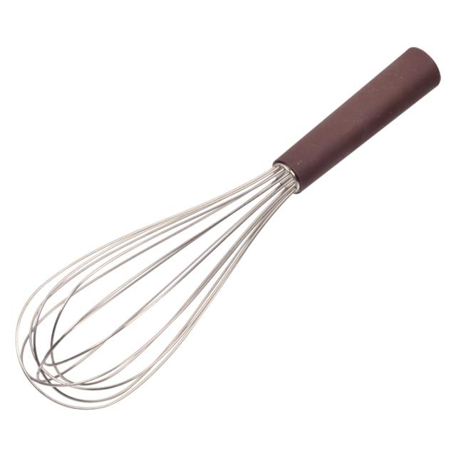 サビに強く衛生的なステンレス製の泡立て器です。樹脂製のハンドル部分にはラバー塗装が施してあり、滑りにくく柔らかな手当たりです。長時間の泡立てでも疲れにくいため、一定の力で素早く泡立てることができます。卵やクリームを泡立てたり、材料を混ぜ合わせるのに最適です。