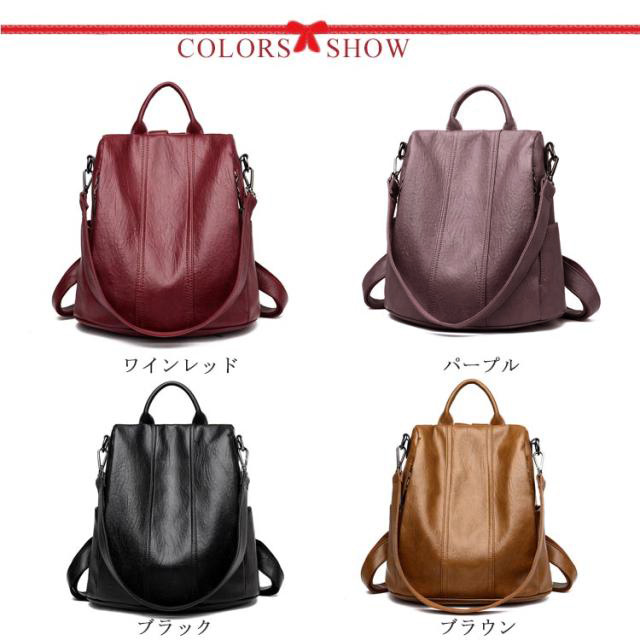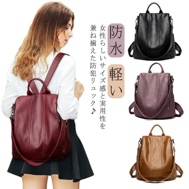 防犯 リュック レディース リュックサック 2way バックパック 大人 レザー 革 背面ファスナー 防水 撥水 通勤 かわいい きれいめ 軽い