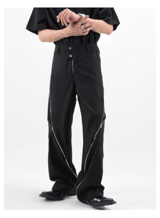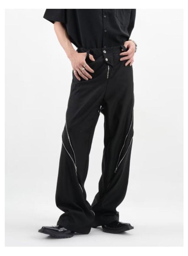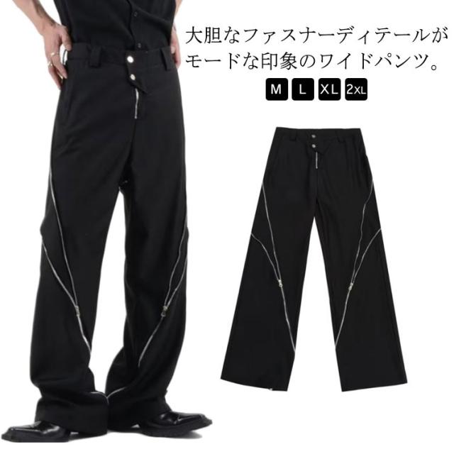 ワイドパンツ メンズ チノパンツ ルーズ ワイド 長ズボン ファスナー ジップ ロングパンツ 無地 ゆったり 大きいサイズ カジュアル ストリート 春 夏 春服 夏服 秋 冬 韓国 ファッション モード系 送料無料