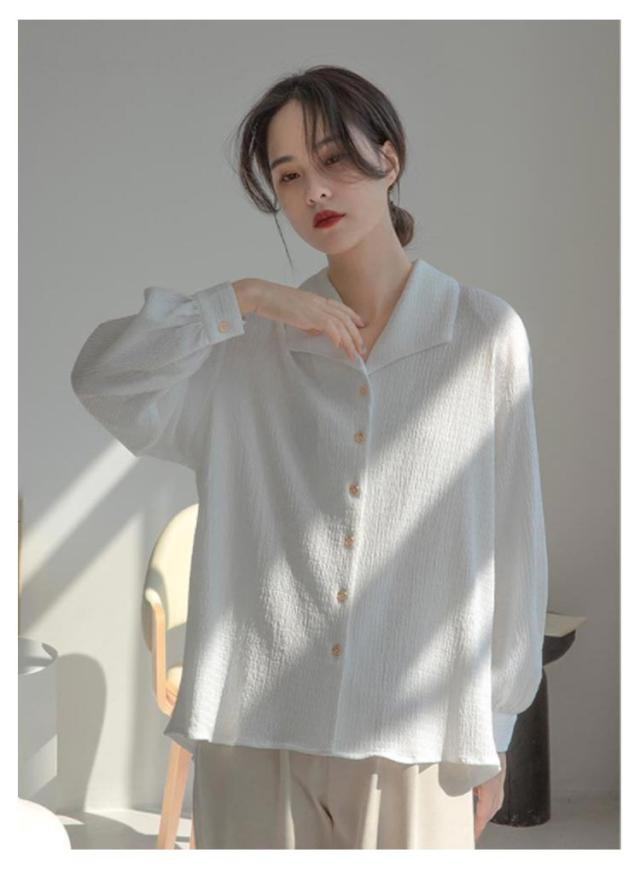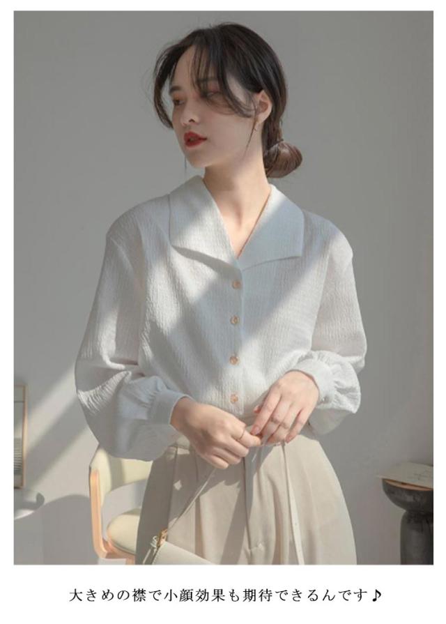 | 表面感のある素材がトレンド感漂うブラウス。 程良い袖のボリューム感が女性らしいシルエットの1枚 大きめの襟で小顔効果も期待できるんです♪ カジュアルにデニム合わせはもちろん、スラックスで綺麗めなスタイルもおすすめです | |