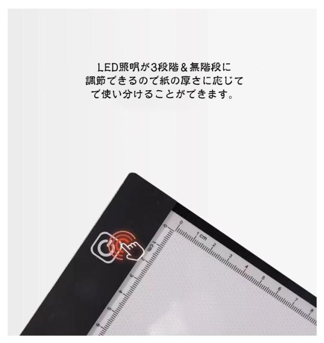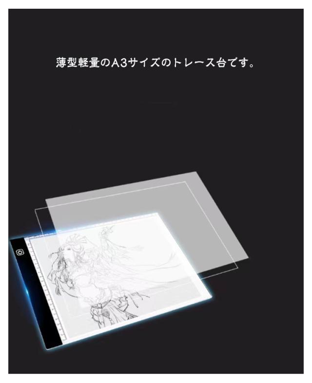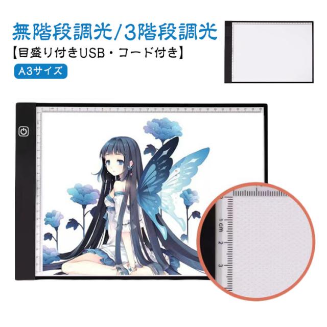 LED トレース台 A3サイズ 無階段調整 3階段調光 薄型 USB給電 コード付き ルーラー 目盛り付き 色つけ トレーシング イラスト 製図 アニメ コミック キャラクター LED Tracing ダイヤモンドアート トレス台 トレース プレゼント 製図用品