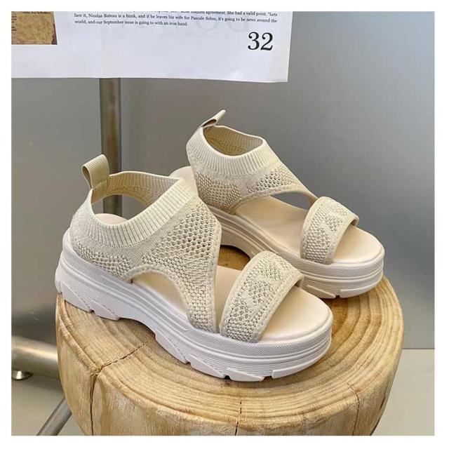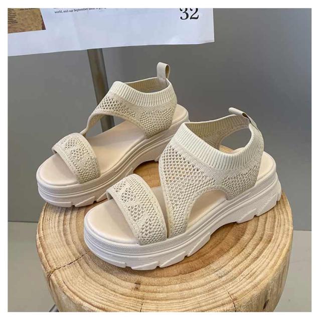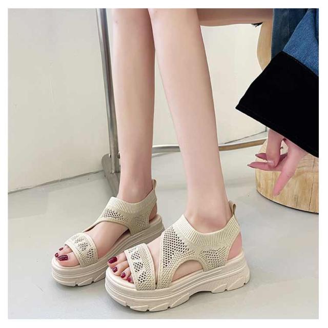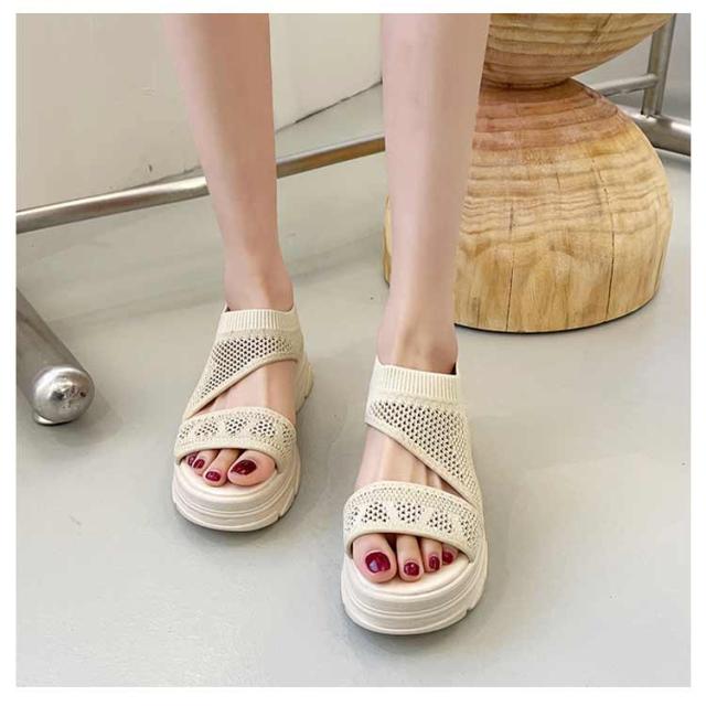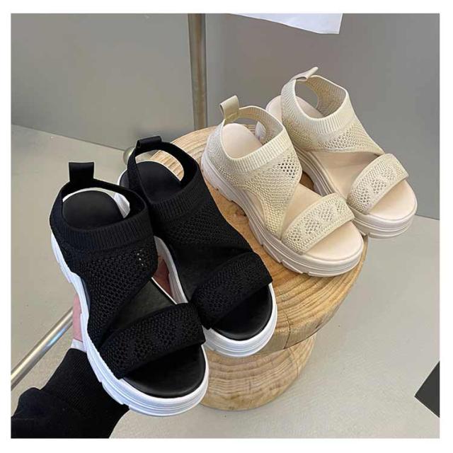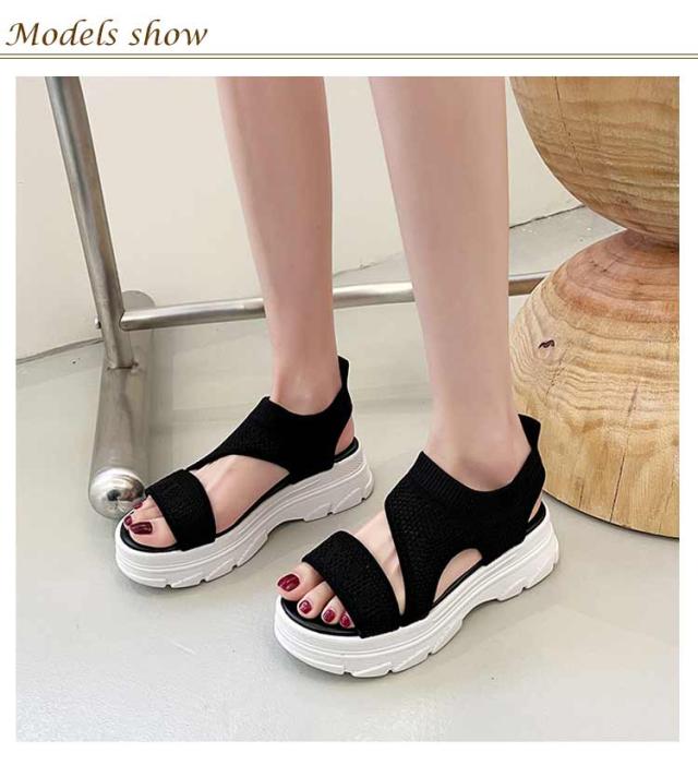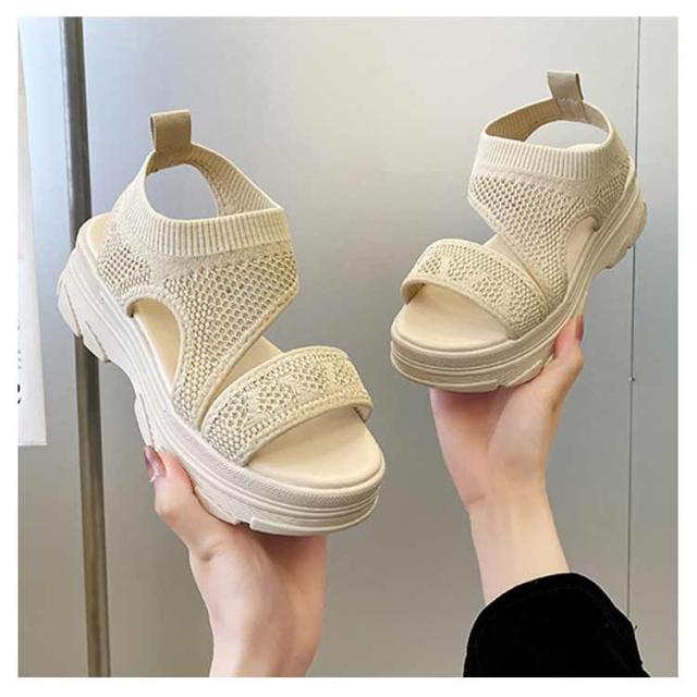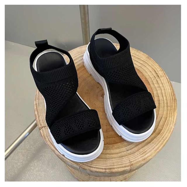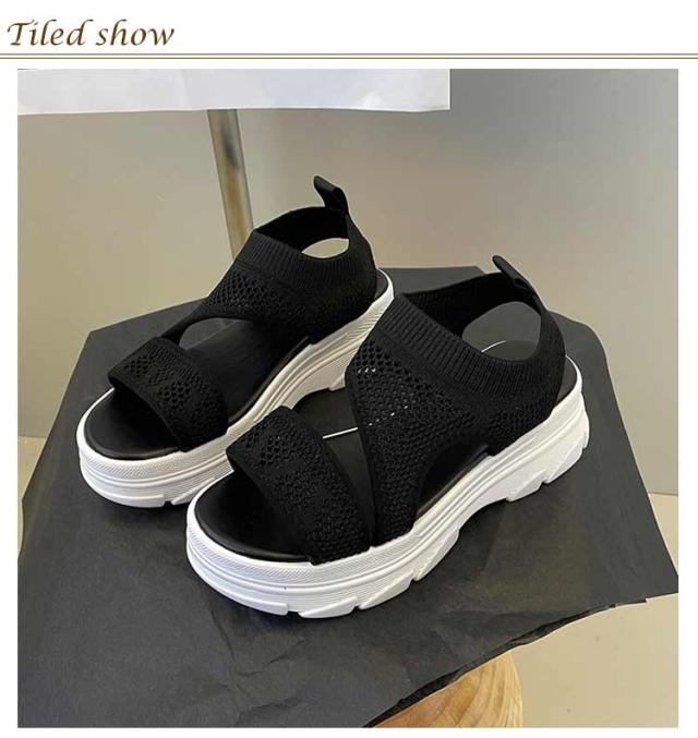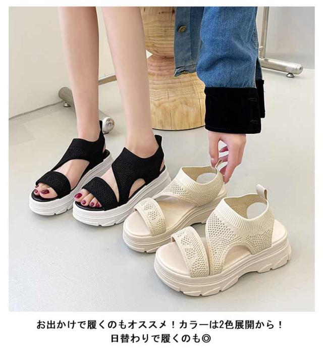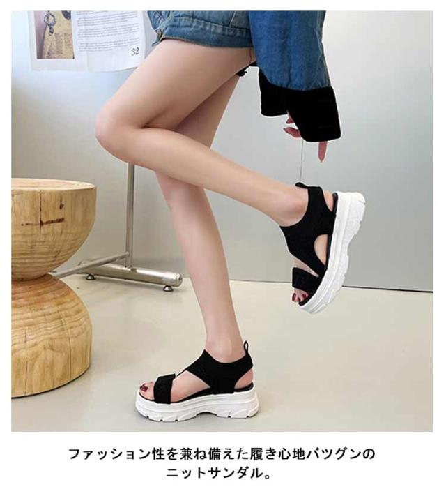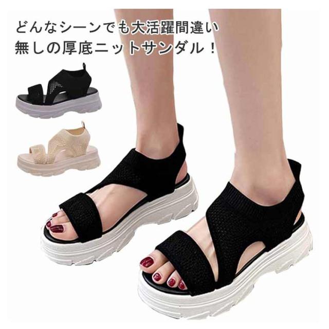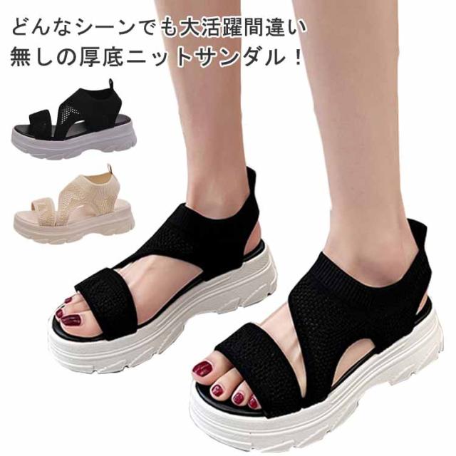 厚底サンダル レディース サマーサンダル スニーカーサンダル サンダル スポーツサンダル 外反母趾 ニットサンダル 厚底 広幅 外反母趾 歩きやすい ストラップ 厚底 軽量 ベルクロ 疲れにくい 歩きやすい カジュアル メッシュ 通気性 美脚効果