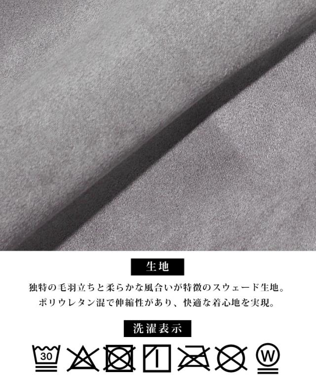 程よく光沢感のあるスウェード素材を使用し、なめらかさがやみつきの生地感に仕上がるだけでなく、ラグジュアリーな洒落感をプラス。